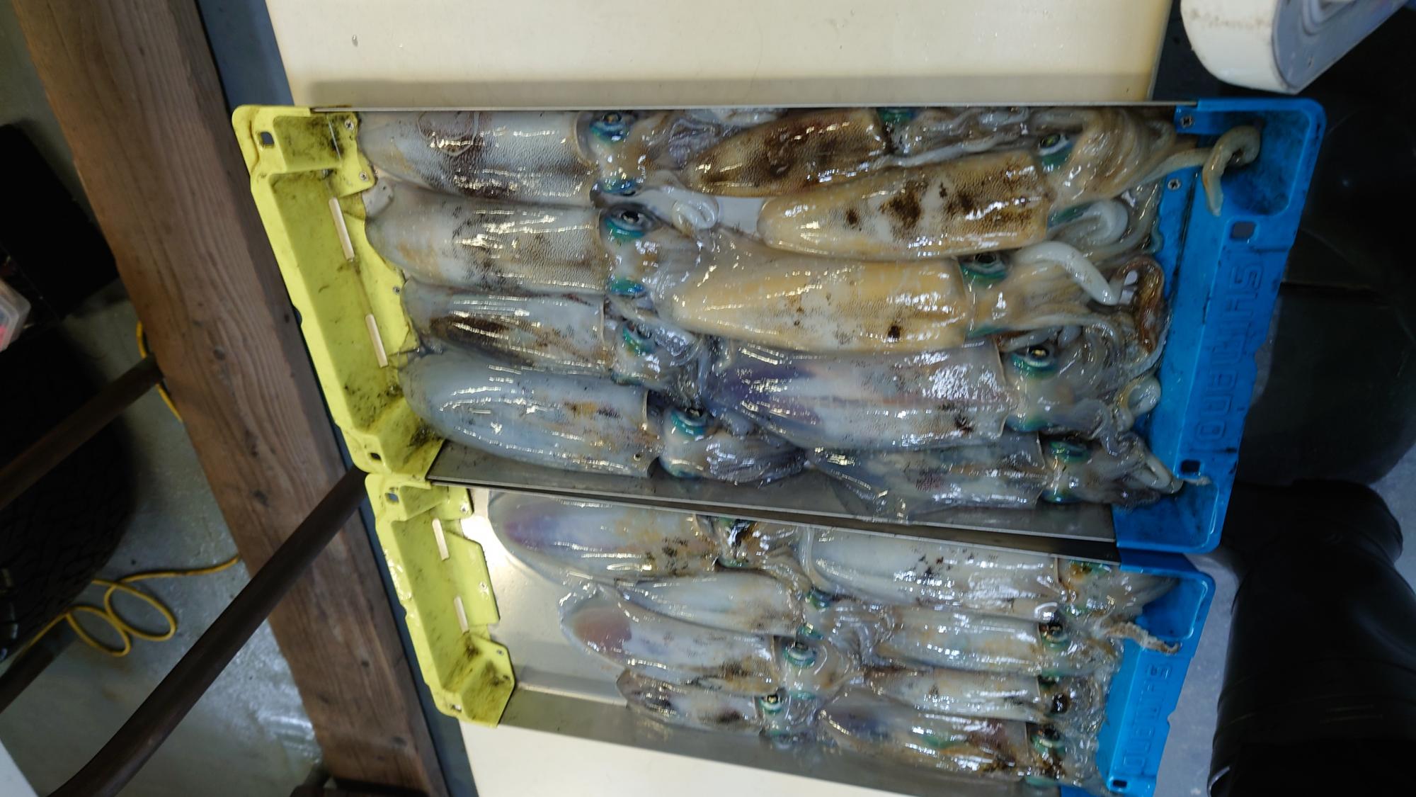 雨、ウネリ大、船グルグル回る、回る 悪条件の中でしたが皆様の頑張りで 多くは無かったですが、ヤリイカ、マイカにと当たってくれました(^^)