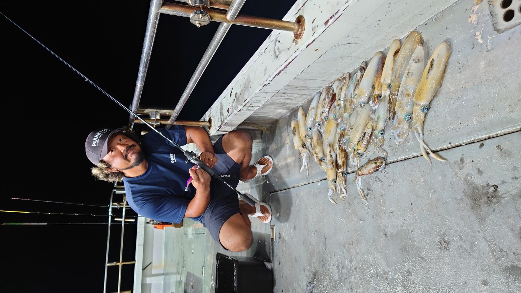 スルメイカ優勢のイカメタル&バチコン半夜便 2025/08/23 明るいうちにスルメがバタバタと当たり、おっ! これは行けるかと期待して電気点灯。 点灯後もポロポロと当たるのは何故かスルメイカばかり、、?? 棚も深く、、誰かしら竿曲げてましたが、、 スルメが大半で、、 バチコンファンの方々は、ギガアジゲ…