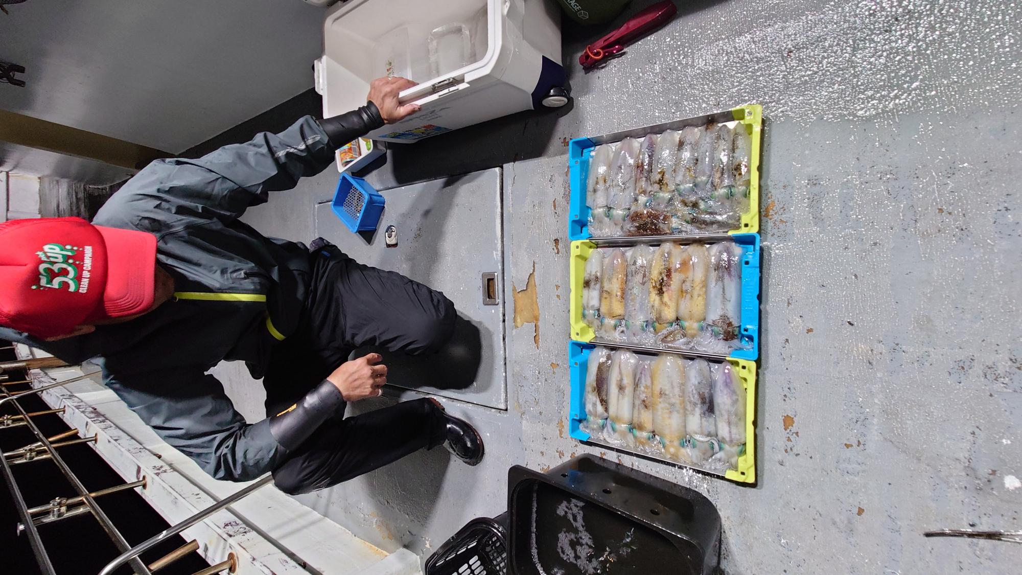 バチコンとイカメタルで遊んでいただきました(^^) 2025/08/31 イカは連日の勢い程は無く、、 でもそんな時はバチコンでアジ狙いにスイッチされる方多く、イカとアジでお土産確保していただけました✨️ 今シーズンはまたまどイカメタル行けそうですね〜 釣れてる間ほ出船します。 皆様のエントリーお待ちしてます。 船に氷…