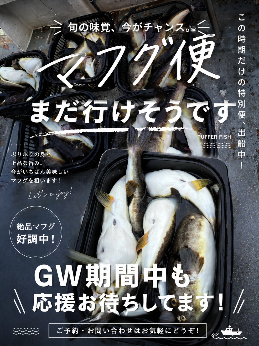 マフグ便2026/04/29 ボチボチと当たりました(^^) マフグ便、ゴールデンウィーク期間中も出船します。 皆様の応援お待ちします